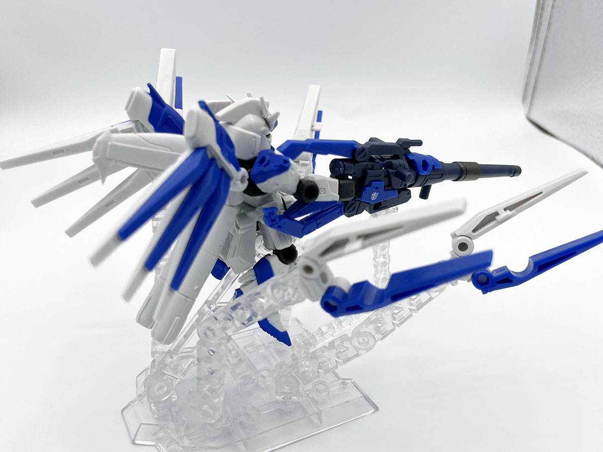 이게 원래 있는 설정인지 근래에 추가된 설정인지는 모르겠지만, 이거 정말 하이뉴건담용 무장 맞나 싶은 박력있는 무장. 이름도 하이퍼 메가 하게도 하이퍼 메가 바주카 런처라는 박력 넘치는 이름인데다, 스탠드를 활용해여 거치가 가능한 구성과 함께 전시하도록 권장하고 있는 큼지막한 핀판넬 등, 구성이 굉장히 화려하다. 기왕 해주는 김에 핀판넬의 빔 부분을 재현한 이펙트 파츠도 있었으면 어떨까 싶긴 하지만 그렇게 무게가 추가되면 단순한 구조의 스탠드가 버티지 못할 듯..
