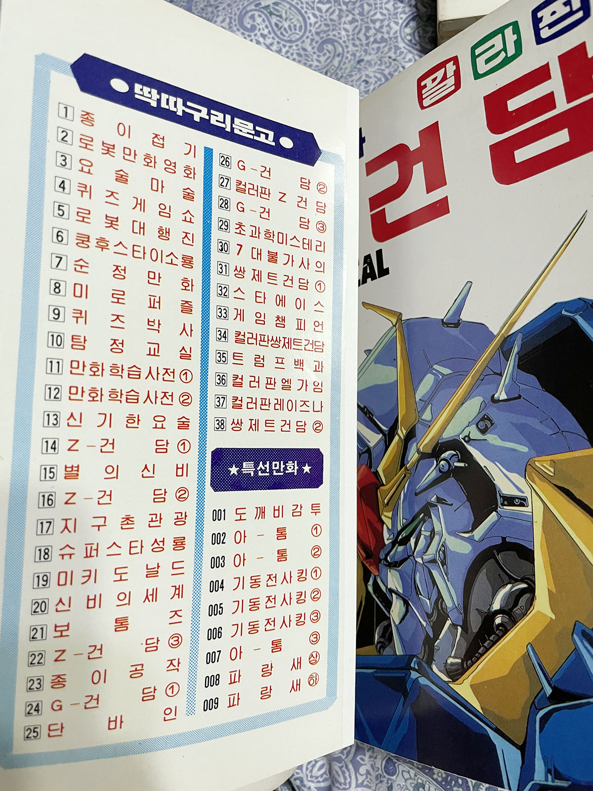 이 책들은 80년대 후반, 개인적으로 국민학교 고학년이던 시절 친구가 갖고 있던 걸로 열심히 읽었었는데, 제본 방식 탓에 앞의 컬러인쇄 페이지들이 금방 너덜너덜하게 떨어져 나가곤 했었다. 그 페이지에 멋진 그림이 그려져 있으면 그대로 사라지기도 했던 그런 시절이었는데, 이번에 구하게 된 이 책들은 놀랍게도 세월의 흔적은 있을지라도 낙장이 하나도 없는 좋은 보존 상태를 보여주고 있었다.