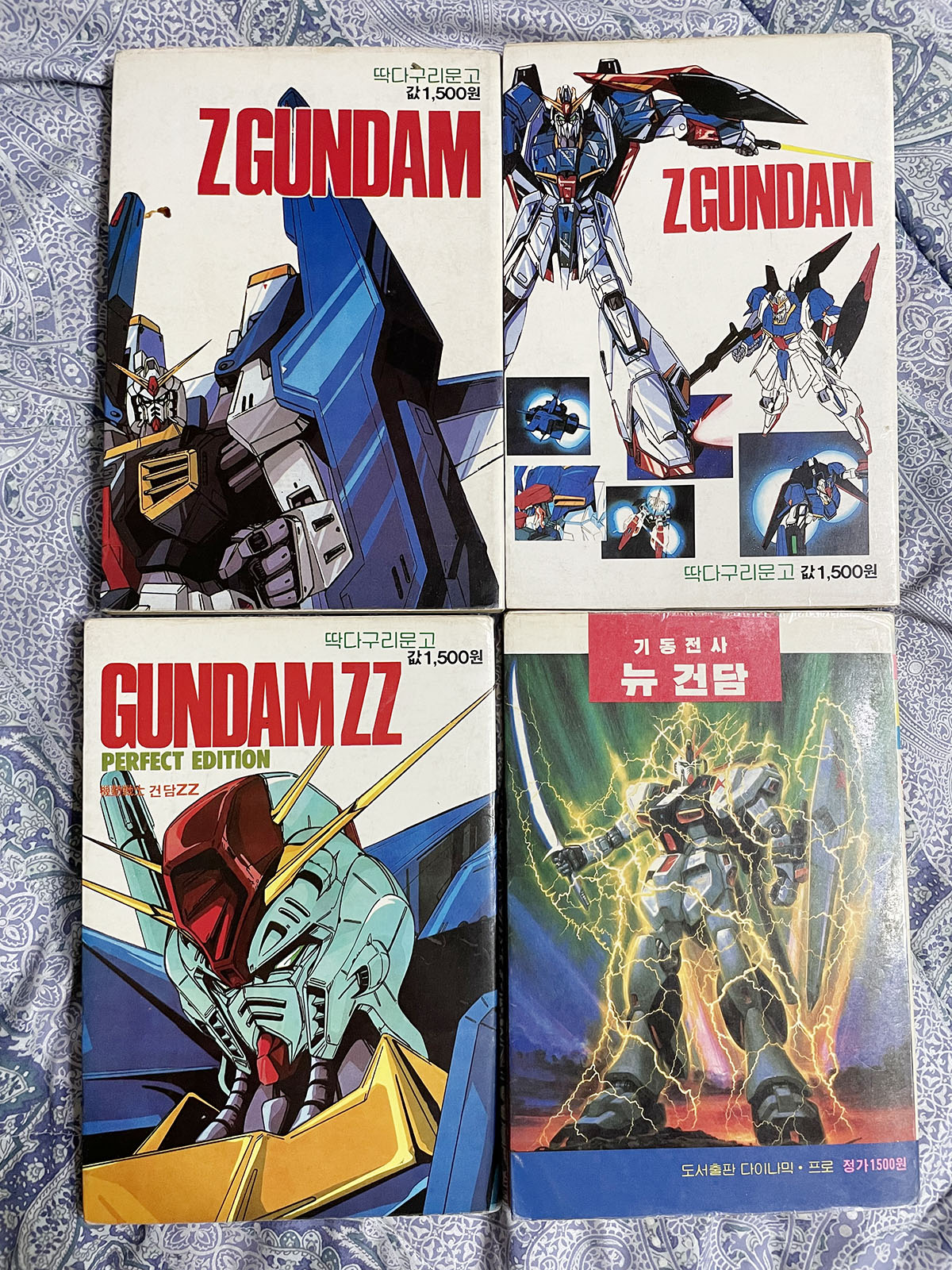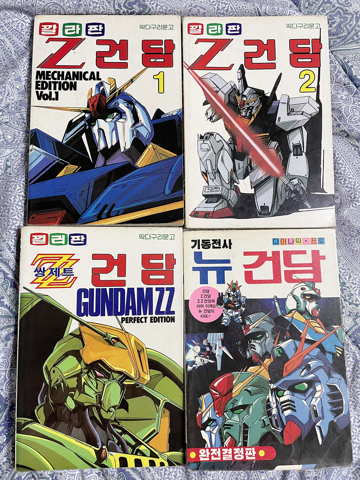이 책은 Z건담과 쌍제트(ZZ)건담이 성심당 딱다구리 문고1987년에, 뉴 건담이 다이니믹 프로에서 1988년에 나온 책들이다. 내 경우에는 이 책들을 국민학교 시절에 친구가 갖고 있던 걸 빌려서 읽었는데, 이런 책들을 읽음으로서 프라모델 설명서와 박스에 단편적으로 적혀있던 이야기들을 머릿속에서 이어붙여가면서 건담이라는 컨텐츠를 나의 것으로 해 나갔던 것 같다. 지금 봐도 멋진 저 임팩트 넘치는 일러스트들과 어렵지만 어디에서도 보지 못한 굉장해 보이는 이야기와 설정들은 더 말할 나위도 없었고.