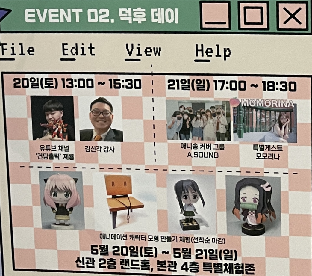 2022년부터 슬슬 COVID-19로 인한 모임이나 행사가 다시 시작되더니, 2023년에는 다양한 행사가 열리고 인파도 몰린다는 소식이 들려온다. 그 중에서, 개인적으로 관심있는 서브컬쳐 관련 행사도 열리고 있지만 매번 이런저런 사정으로 참가를 계획했다 포기하는 상황이 계속되었는데, 이번에는 참석할 수 있는 기회가 생겨서 다녀오게 되었다. 무려 이름부터 어마어마한 '덕후랜드'