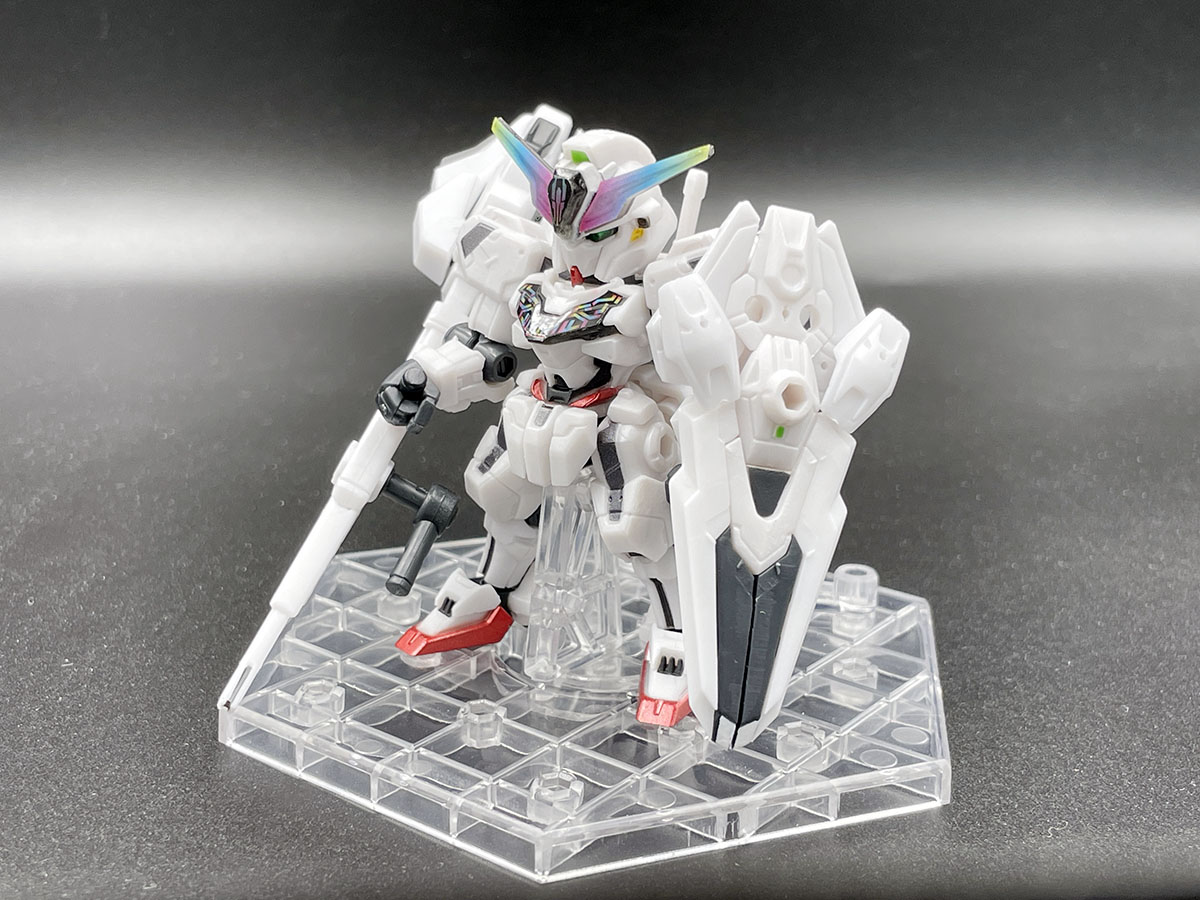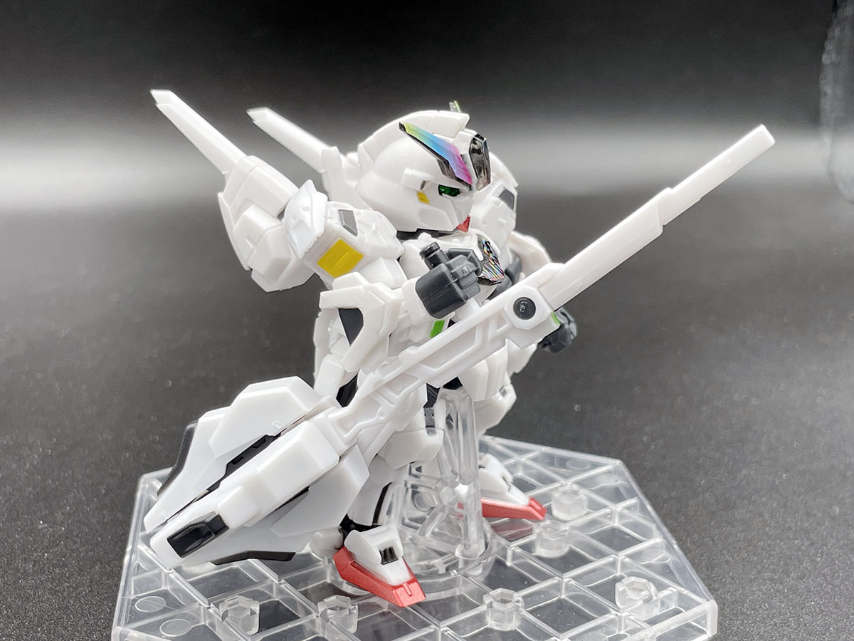 일반판 23탄의 에어리얼과 마찬가지로, 실드(에스커천)가 조각조각나서 각각 비트처럼 사용되기도 하고, 소체 각부에 장비되어 비트온폼을 재현할 수 있기도 하다. 실드를 하나하나 뜯어서 하나하나 붙여줘야 하다보니 영 귀찮기도 한데, 에어리얼에서 한 번 해보기도 했고, 다소 썰렁한 소체를 확실히 보강해 준다는 느낌이 있어 귀찮음을 극복하고 붙여 보았다.