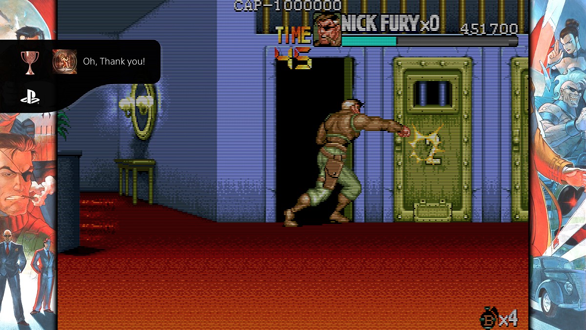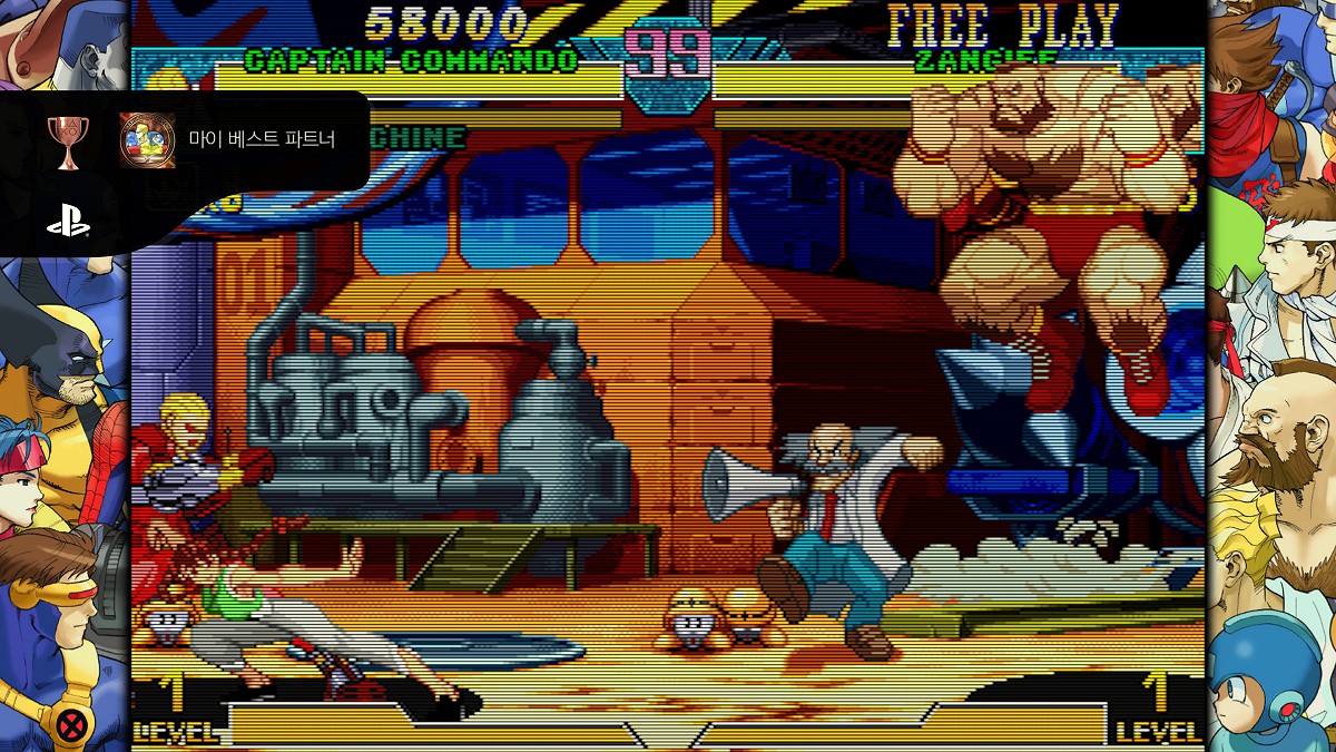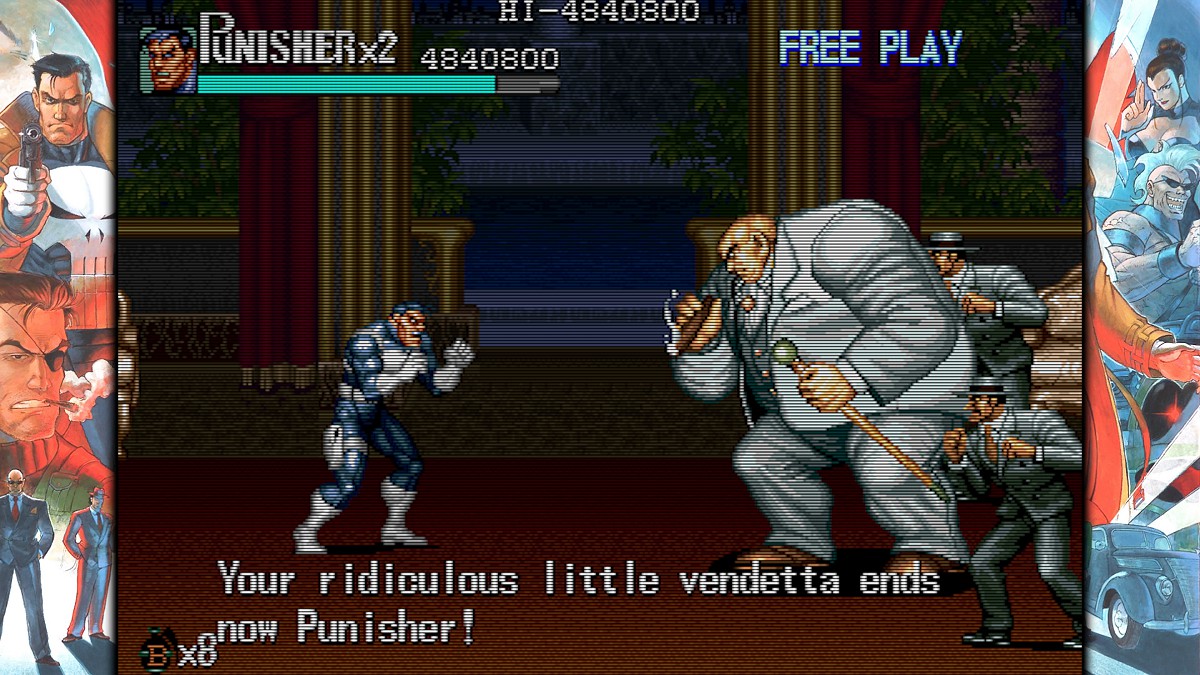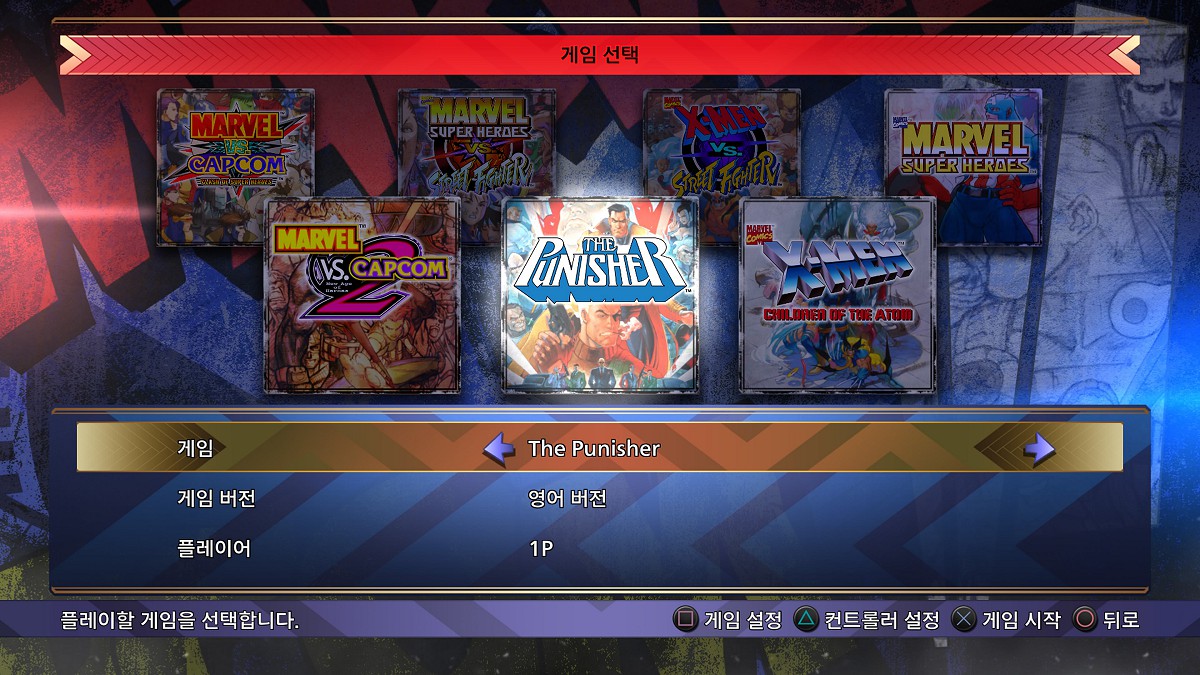 마지막으로 퍼니셔. 이번 타이틀 유일의 벨트스크롤 게임인데, 가정용 최초 이식이라고 되어 있다. 북미에서 제네시스판으로 이식된 걸로 알고 있는데... 일본-아시아 한정으로 최초 이식이 되는 것인가? 사실 에뮬레이터 게임을 즐기는 사람들한테는 그리 새로울게 없는 이식일 수는 있겠으나 정식으로 이식된 정품(...)을 즐길 수 있게 되었다는 것이 나름의 의의가 아닐까 싶다. 박력은 있으나 꽤나 어려운 것이 사실인데, 캡콤의 ~~~컬렉션 시리즈들의 늘 그렇듯 에뮬레이터의 되감기 기능을 활용하면 가짜 노미스 클리어를 만들어내는 것도 가능한지라 시간을 들여 쭉 클리어해 보았다. 현역 시절에는 오락실에서 코인러시를 도전해보지도 않았던 게임이었지만, 새삼 도전해보니 시간이 흘러도 걸작은 걸작이라는 생각이 들었다. 다들 아는 정보겠지만, MCU 에서 새뮤얼 잭슨이 연기한 '닉 퓨리'가 백인이면서 2P 캐릭터이자 퍼니셔의 동료처럼 등장하는게 상당히 새로운 느낌이기도 하다.