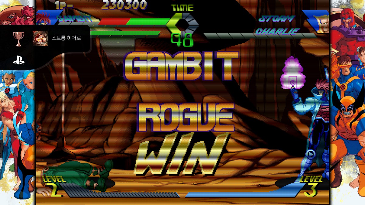 X-MEN 은 오락실에 처음 등장했을 때 체인콤보와 매우 자연스러운 애니메이션 패턴을 선보이며 인기몰이를 했던 기억이 난다. 흑백 게임이긴 하지만 IBM-PC 호환 게임으로 X-MEN2 (RPG)를 즐겨봤던 기억이 있어서, 어느 정도 캐릭터들에 대한 지식이 있긴 했지만 만화나 애니메이션을 보지는 못했던 게임이었다. 센티넬의 기본 스탠딩 포즈를 비롯해서 캐릭터들의 앞뒤 걸음이 프레임과 이동거리가 일치하는 등, 애니메이션 패턴이 매우 화려했던 것이 기억에 남는다. 중간보스로 등장했던 '저거넛'이나 '매그니토'의 강력함도 충격적이었고, 숨겨진 캐릭터로 무려 '고우키=아쿠마' 선생이 등장하기도 해서 여러모로 강렬한 인상을 남겼던 캡콤표 마블코믹스 대전게임 제1작. 나는 주캐로 '사일록'을 사용했는데... 이 게임 등장전까지는 그리 인지도가 높은 캐릭터는 아니었다고...