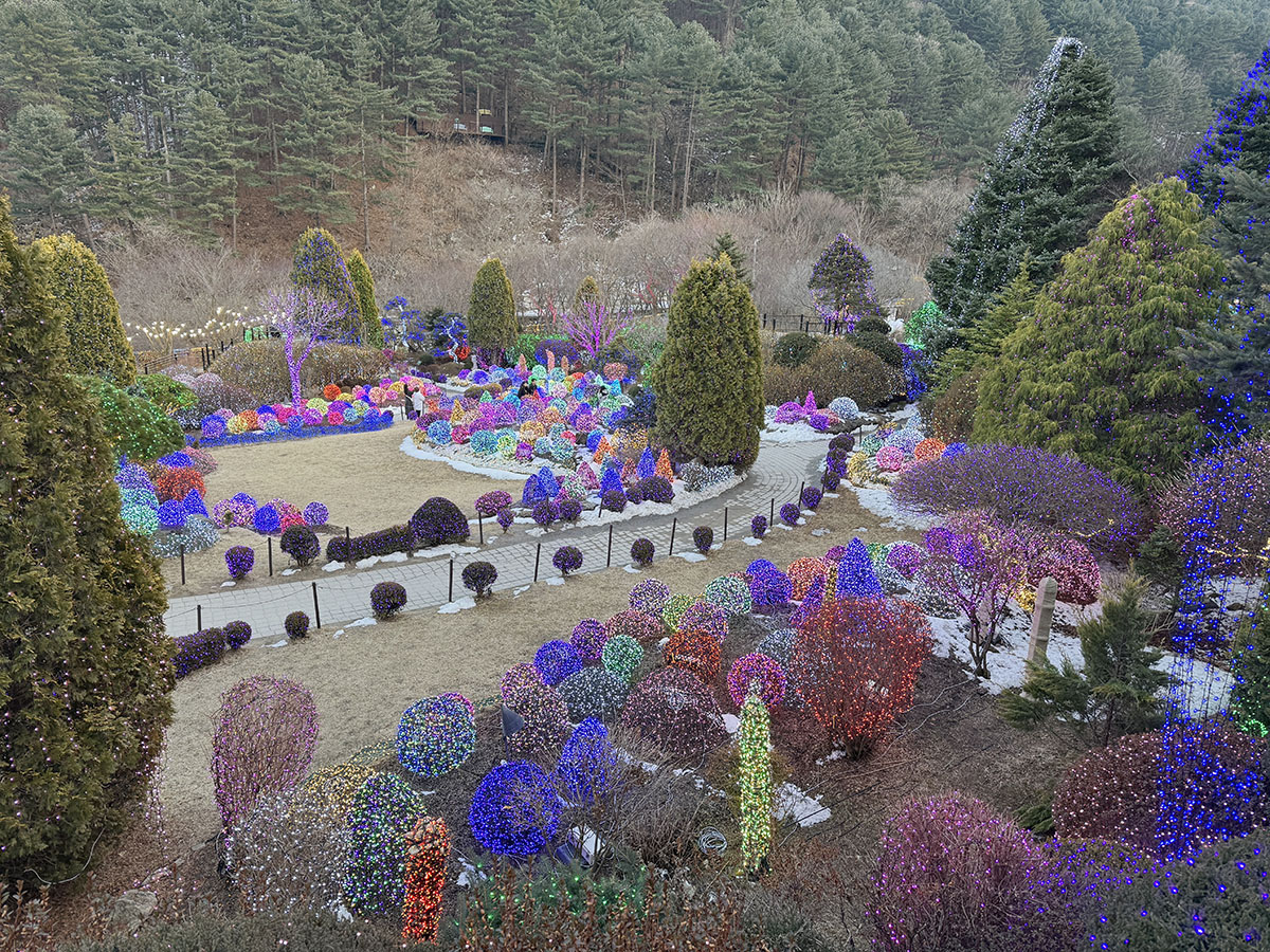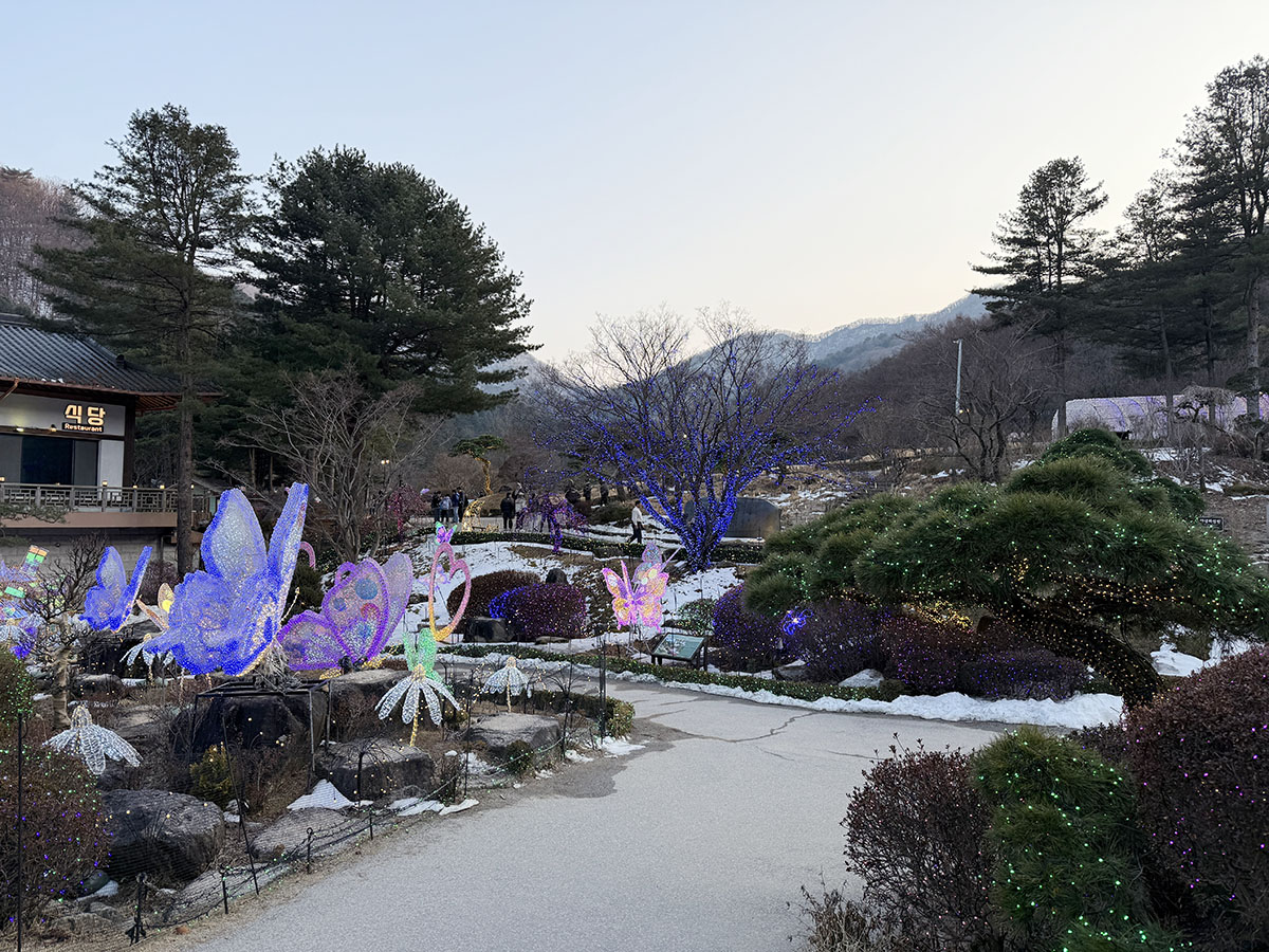 동물원을 나와서, 수목원으로 향했다. 계획을 세울 때는 일몰시간에서 한 시간 정도 전에 수목원에 입장해서 낮시간의 수목원과 밤시간의 수목원을 모두 체험해보자는 계획이었는데, 딱 그 계획에 맞게 움직일 수 있어서 다행이었다. 3월 초라는 아직 겨울의 그림자가 남아있는 계절의 수목원에 무슨 '수목'이 얼마나 있을까 싶었지만, 이 계절의 '아침고요수목원'은 사실 '밤중시끌조명원'이었더랬다...