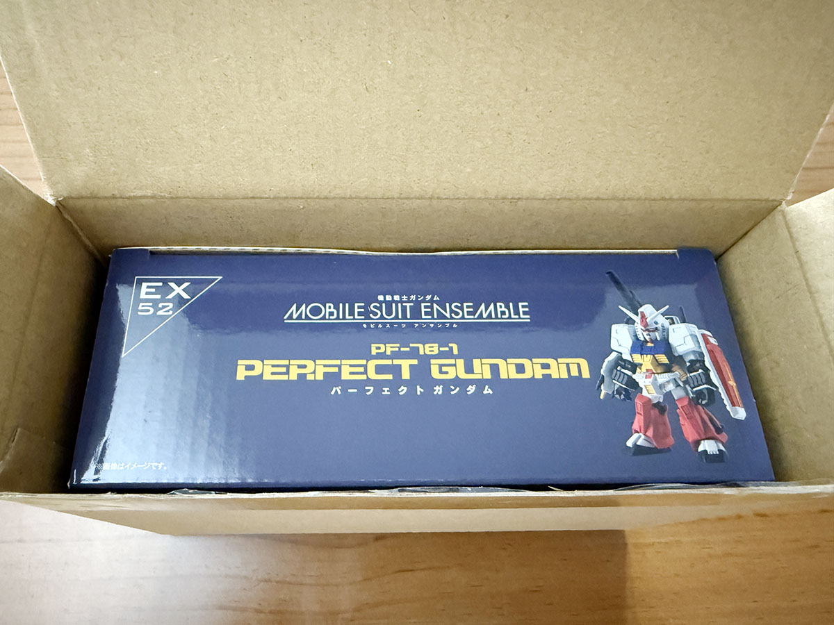 퍼펙트 건담은 사실 완구 및 저연령층 코믹용 디자인이라는 형태를 갖고 있는 지라 의외로 당시의 팬이 아니라면 디자인을 썩 좋아하지 않는 경우가 많다. 하지만 데포르메 액션피규어인 앙상블에 웃는 눈동자까지 적용해서 나와버리면 디자인으로 깔 수는 없을 것이다. 별도의 무장이 없는 것이 아쉽기도 하고 볼륨이 작게 느껴지는 원인이기도 한데, 등짐의 캐넌이 가동식이라고는 해도 손에 뭘 들고 있는게 없다는 점이 아쉽다. 1/144 스케일 프라모델의 박스아트에 그려져 있던 빔사벨이라도 하나 넣어줬으면 좋겠다는 생각을 하게 되는걸 보면 역시 종종 한 끗이 아쉬운 앙상블 EX 그 자체로구나...하고 납득하게 되는 것이었다.
