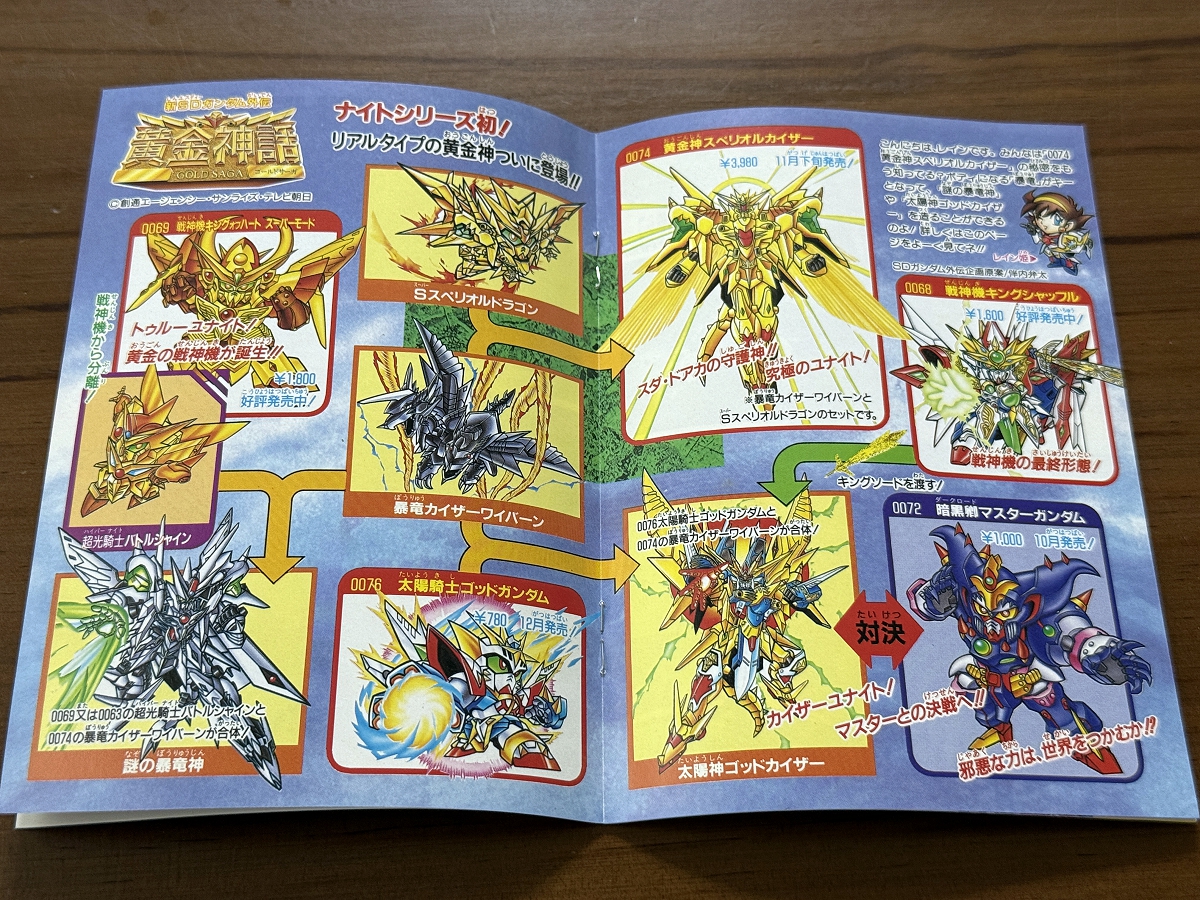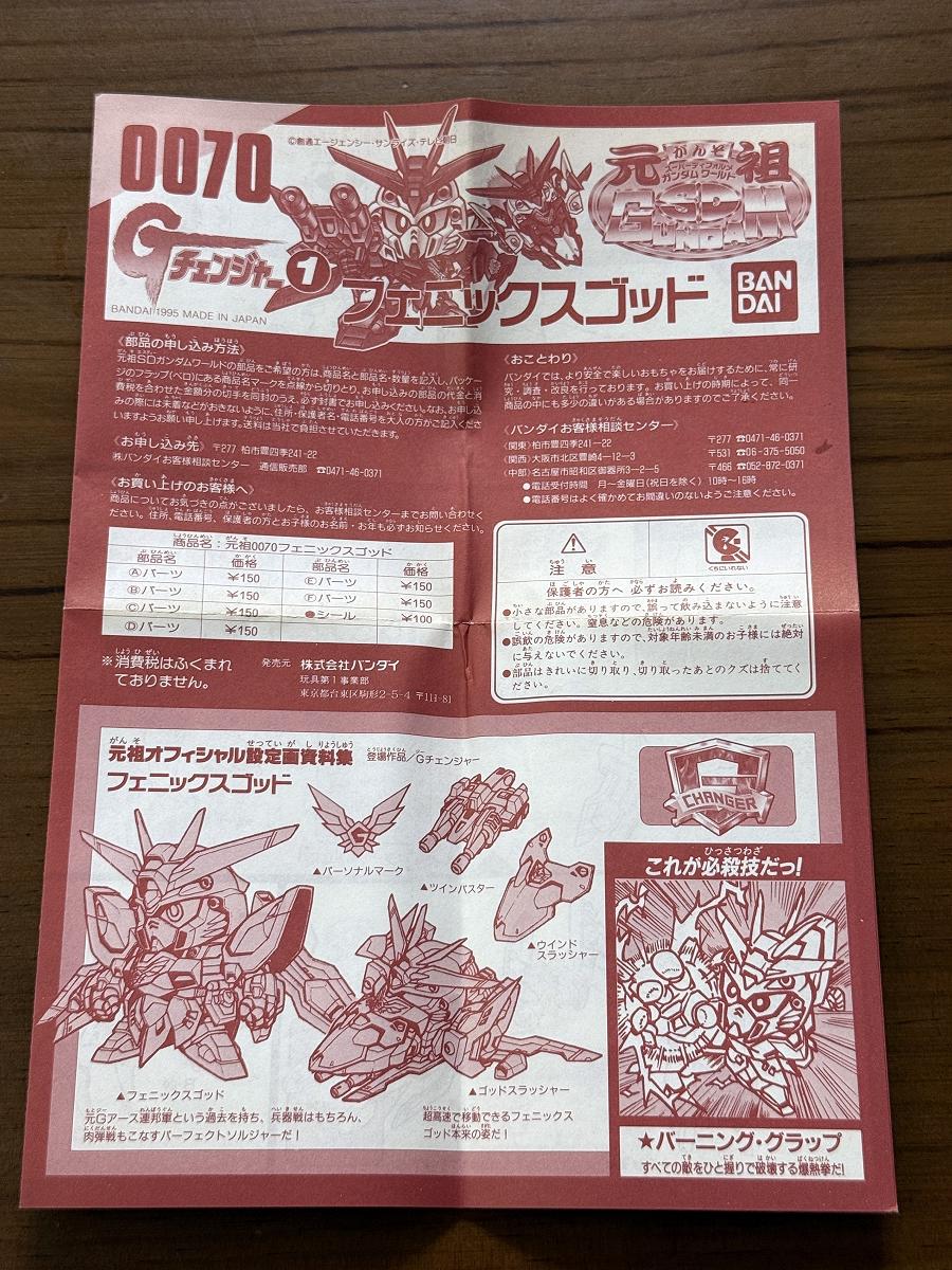 당시 가끔 반다이의 프라모델을 구매하면 요런 상품 소개서가 들어있는 경우가 있었는데, 이 피닉스갓에도 카탈로그가 들어있다. 표지를 포함한 앞부분에는 G체인져의 세계관을 설명하는 만화와 상품 소개가 수록되어 있고, 뒤로 가면 생전 처음보는 게임기의 광고도 들어있다. 저거 정말 발매했던 것일까... NBA 카드를 일본에서 유통한게 반다이였나 신기하기도 하고 말이지.
