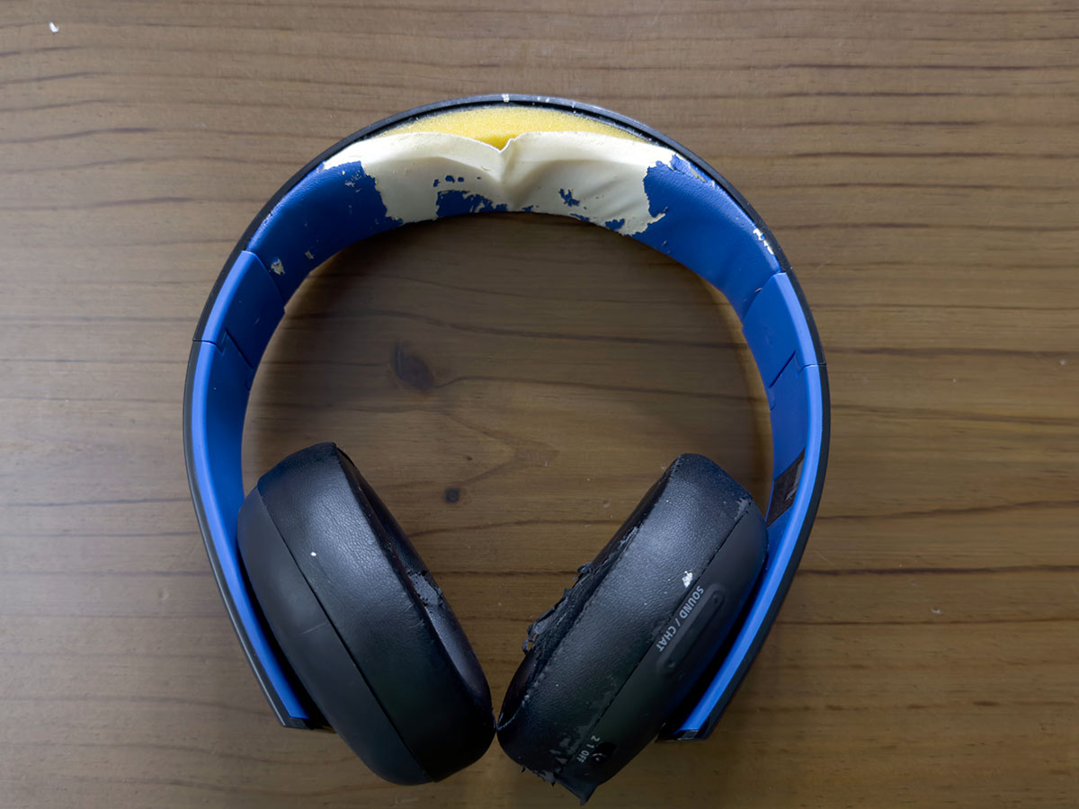 석유에서 뽑아낸 물질들을 이용해서 다양한 합성수지를 만들어 내어 인간에게 편리하게 사용하게 된 것이 어제 오늘의 일은 아니지만, 종종 그 완전무결할 것 같은 합성수지들이 의도치 않은 방향으로 변하는 것을 겪게 되곤 한다. 게임용품들도 그런 경우가 종종 있어서 케이블에서 뭔가 기분나쁜 액체가 묻어 나오거나, 일정 플라스틱의 표면이 끈적해지거나, 푹신한 표면들이 바스러지듯이 떨어져 나오거나 하는 식으로. 소니에서 블루투스가 아닌 USB 동글로 연결되며 마이크 기능이 정말 좋게 만들어져 사운드 감상 및 게임용 음성채팅에도 탁월한 성능을 자랑하는.. 이 골드 헤드셋도 푹신한 표면이 바스러지는 기분나쁜 현상이 발생한다.