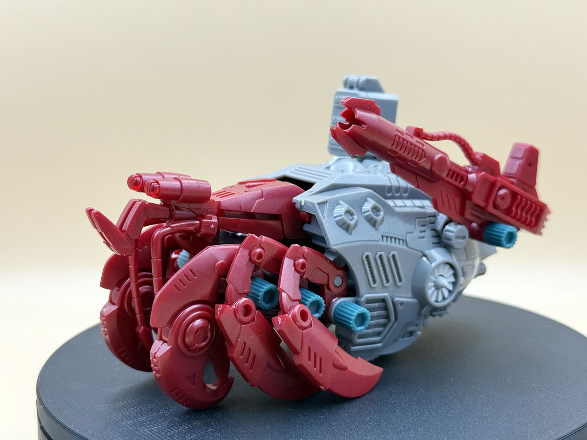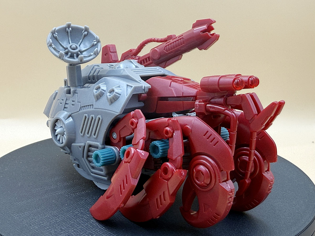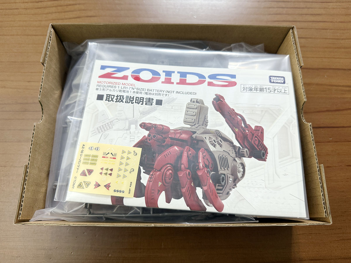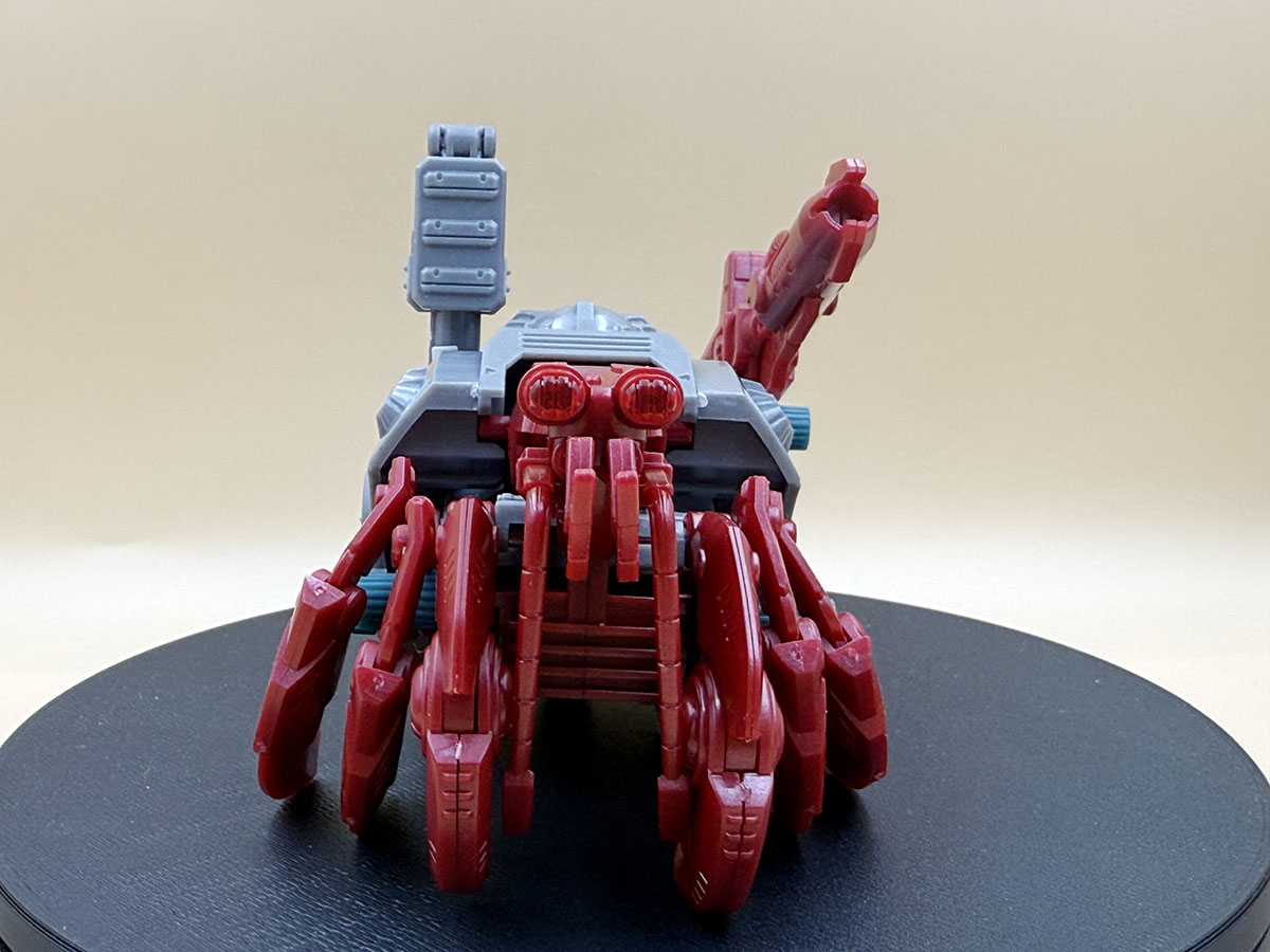 조립 자체는 매우 쉬워서 딱히 시간이 걸릴 일이 없긴 한데, 런너가 터치 게이트 비슷하게 되어 있어서 사실 저렴하지 않은 가격으로 판매되는 제품임에도 런너자국이 남는 것이 못내 아쉽다. 조이드의 아이덴티티 중 하나인 연질 캡은 상당수가 남긴 하는데, 딱히 조이드를 마구 모을 예정도 없는지라 그냥 얌전하게 기념으로 모셔둬야겠다. 설정이 있는 것인지, 머리 부분으로 보이는 위치에 수염과 더듬이로 보이는 부품을 장착하면 고감도 센서 장착 사양이 되고 없으면 일반기...라는 그런 설정이 있는 것 같다.