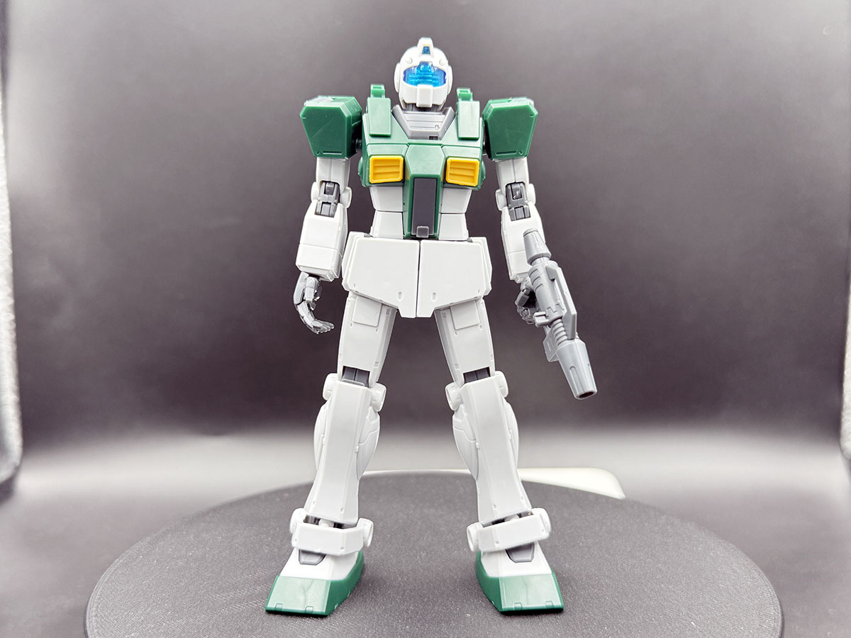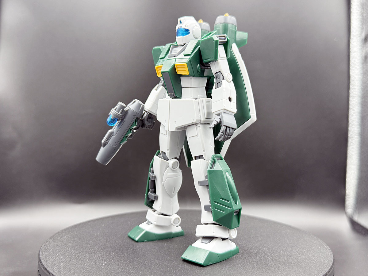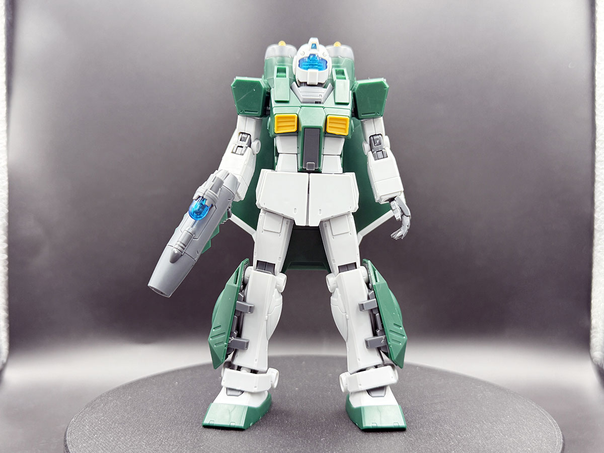 조립 중에, 등짐을 달지 않고 GM의 소체만 찍어두면 이런 느낌. 녹색 부분을 붉은 색으로 뽑고 노멀 GM의 등짐만 달아준다면 이대로 GM 리바이브라고 부르기에 손색이 없는 소체가 되는 거 같다. RGM-79 GM짐의 설정을 최대한 살린 평평한 프론트 스커트도 잘 살아있고, 마냥 뭉툭하지도 않고 그렇다고 늘씬하게 화려하지도 않은 프로포션이 너무나 마음에 든다. 반다이는 어서 일반판 GM리바이브를 이대로만 내줘도 좋을텐데...
