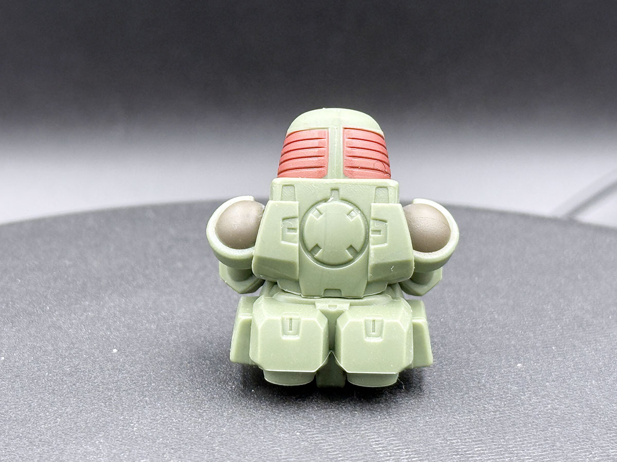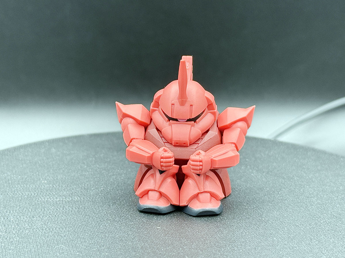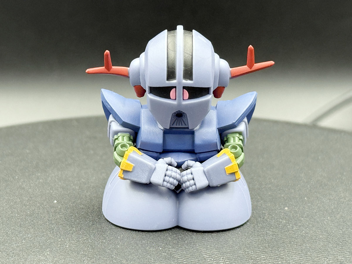 색감이 뭔가 독특한 느낌이 드는, 샤아전용 겔구그. 특징을 모두 갖고 있으면서, 원본 디자인의 넓은 스커트 디자인을 활용해서 매우 안정적으로 쪼그려 앉아있는 것이 재미있다. 등짝에 거치되어 있는 빔 나기나타의 경우, 보통 대각선으로 거치하는 것이 일반적인데, 여기서는 몸통의 중심을 가로지르는 느낌으로 수직으로 서 있는 느낌이 뭔가 특이하다.