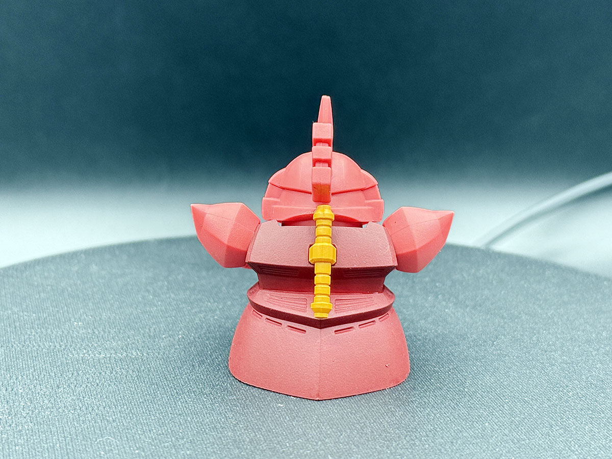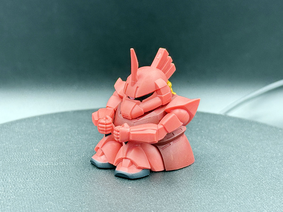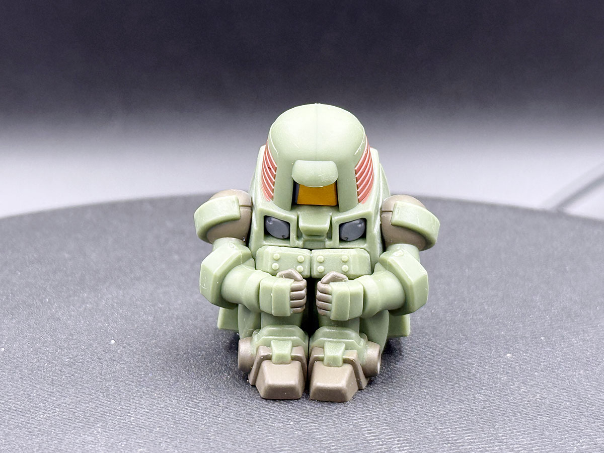 색감이 뭔가 독특한 느낌이 드는, 샤아전용 겔구그. 특징을 모두 갖고 있으면서, 원본 디자인의 넓은 스커트 디자인을 활용해서 매우 안정적으로 쪼그려 앉아있는 것이 재미있다. 등짝에 거치되어 있는 빔 나기나타의 경우, 보통 대각선으로 거치하는 것이 일반적인데, 여기서는 몸통의 중심을 가로지르는 느낌으로 수직으로 서 있는 느낌이 뭔가 특이하다.
