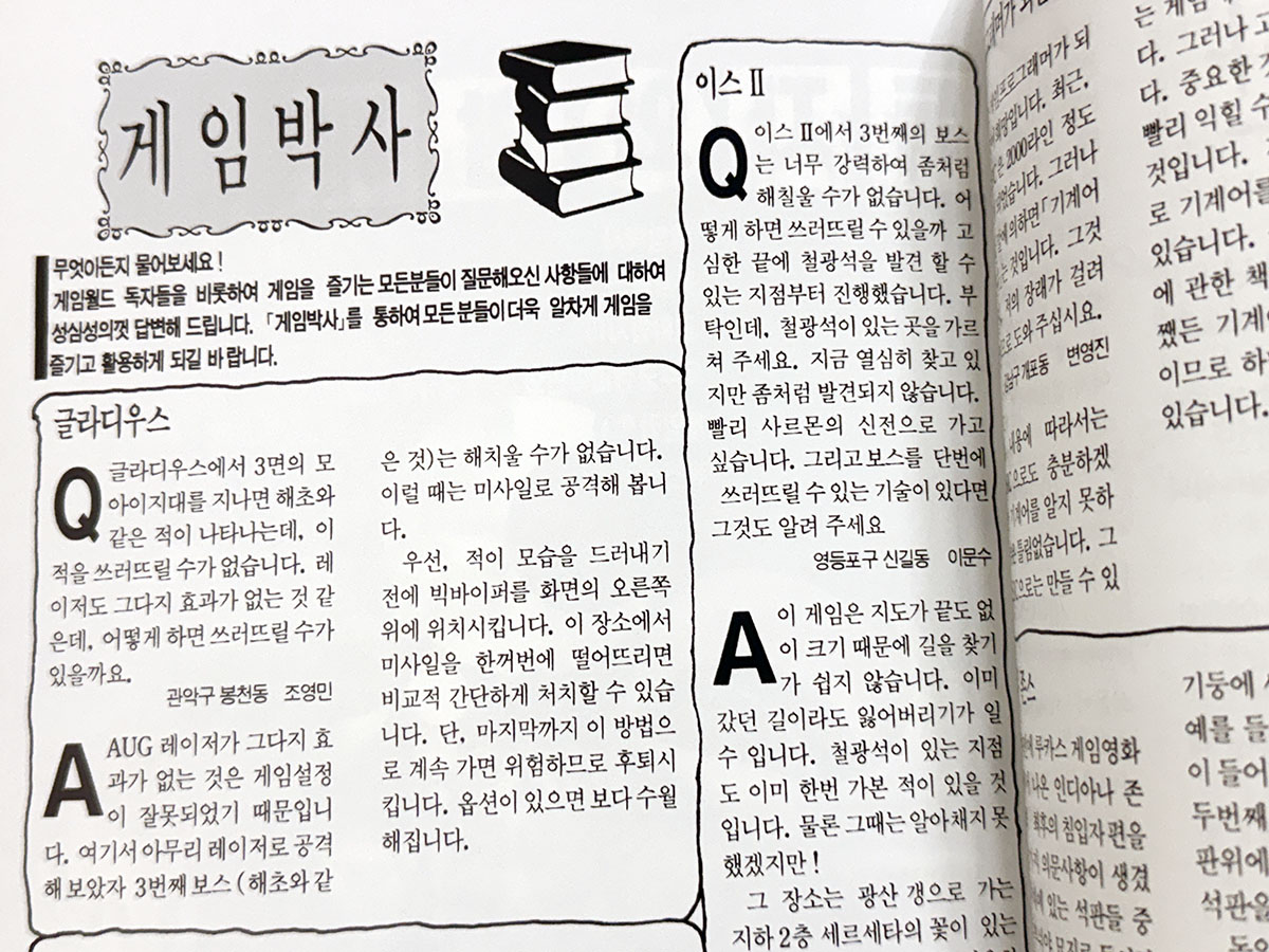 1990년이라는 해는 개인적으로 신변에 커다란 변화가 일어났던 해로, 1990년 8월에는 아직 전자오락기도 갖고 있지 못했고 이제서야 전자오락실을 들락거리기 시작했던 해였다. 당연히, 이 창간호는 당시에 발매를 손꼽아 기다리가다 발매하자마자 구매한 것이 아닌, 조금 더 시간이 지난 후 [게임월드]라는 잡지가 존재한다는 것을 동생을 통해 알게 된 후 연신내 어딘가의 헌책방을 뒤져 뒤늦게 부록없이 본지만을 구매했던 기억을 갖고 있다. 형편이 넉넉치 않던 집이었지만, 교양 함양을 위해 [소년중앙] 등의 잡지를 매월 사 주셨던 어머니 덕분에 또 하나의 월간지를 구독한다는 행위가 무척 자연스럽게 자리를 잡았던 것 같다. 나중에는 무려 3종을 구매하는 지경에 이르긴 했지만 그건 또 몇 년 지난 뒤의 이야기...