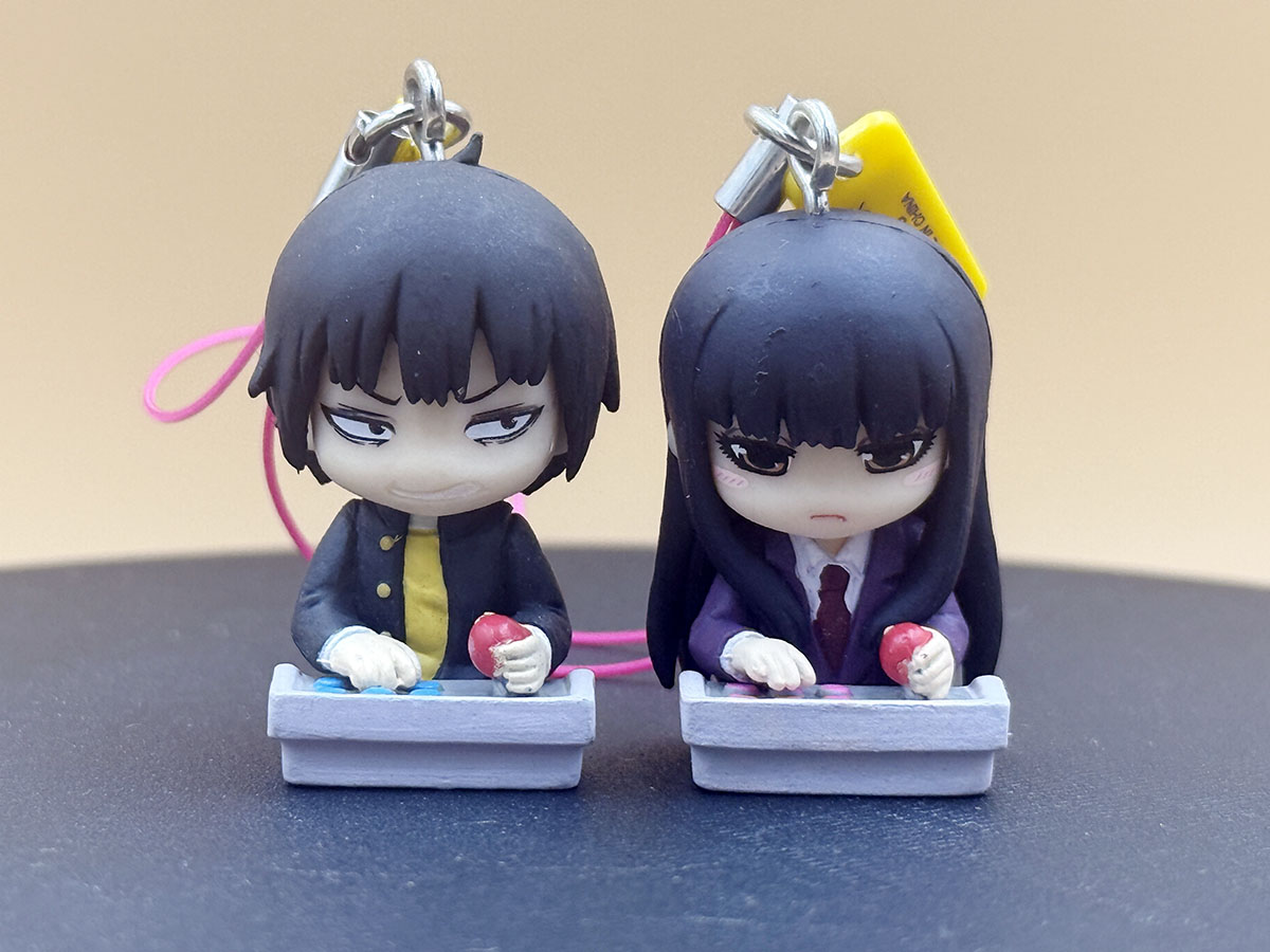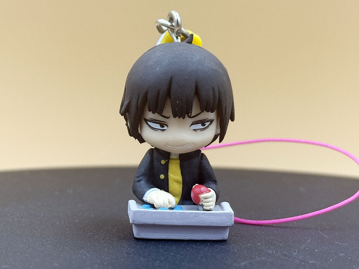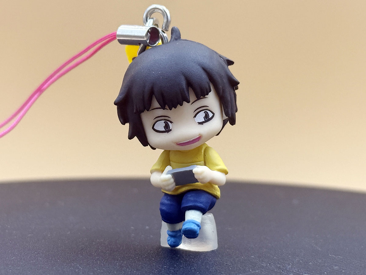 원작의 주인공이자, 전자오락밖에는 아는 것도 잘하는 것도 없는 오락쟁이 소년, [야구치 하루오]. [하이스코어 걸]이라는 이야기는 이 하루오가 오락실에서 중량급 캐릭터를 잘 다루며 오락밖에는 할 줄 아는게 없는 자신을 압도하는 소녀 [오노 아키라]를 만나며 성장해 가는 이야기... 라고 하면 되겠지. 일단은. 기본적으로 이 제품은 스트랩이 달린 키링 같은 제품이지만, 스트랩을 제거하고 미니 피규어로 전시할 사람을 위해서 스탠드도 들어있다.