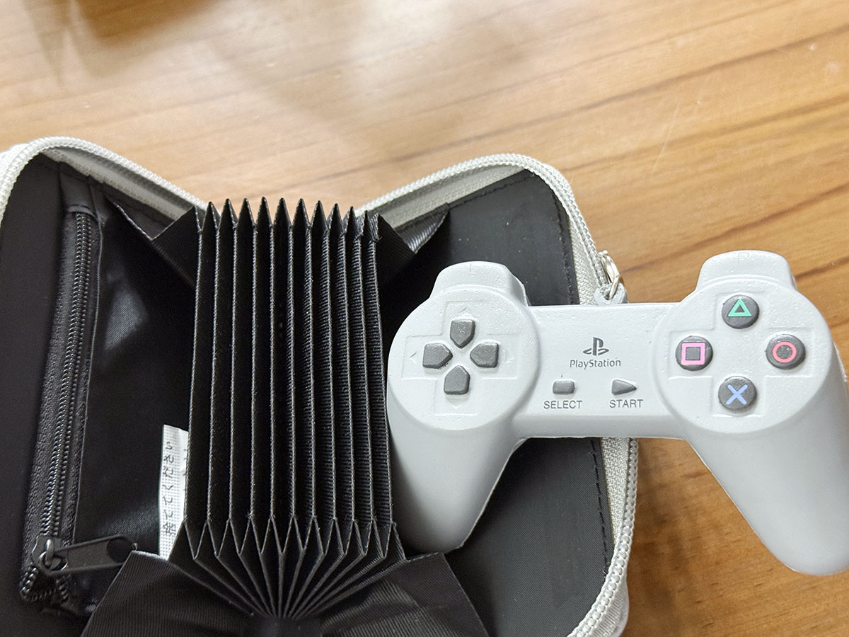 먼저 11월호의 부록은 [초대 플레이스테이션 모티브 수납케이스&로고백] 이라는, 아무튼 PS1 다지인을 한 수납케이스와 로고백...이라고는 하지만 에코백이나 장바구니 같은 느낌의 봉투;;가 들어있다. PS1 디자인의 수납케이스는 다른 잡지의 부록으로도 본 적이 있는데, 이 모노마스터의 케이스는 개중 가장 작다고 하겠다. 위 사진 들에서 볼 수 있듯이 닌텐도 스위치용 타이틀 케이스와 비교하면 폭은 충분한데 높이가 작은 느낌이랄까.