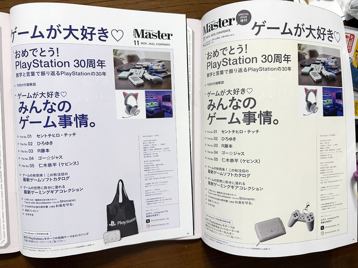 잡지에 게임 관련 부록을 주면... 여지없이 걸려드는 불나방 같은 삶을 살다보니 이번에도 뭔가 들여보았는데.. 이번에는 Smart스마트가 아니라 MonoMaster모노마스터라는 잡지이다. 처음 사보는 것 같기도 하고 아닌 것 같기도 한데, 어차피 잡지 내용이 중요한게 아닌 구매인 것 아니겠는가... 이 잡지는 2025년 11월호와, 11월 증간호라는 구성으로 각각 다른 부록을 주길래 그냥 집어들어보았는데, 표지와 일부 약간의 구성과 디자인 차이를 제외하면 책의 내용이.. 거의 같다. 원래 증간호라는게 이런건가 싶지만, 어차피 부록을 주길래 그냥 집어들...