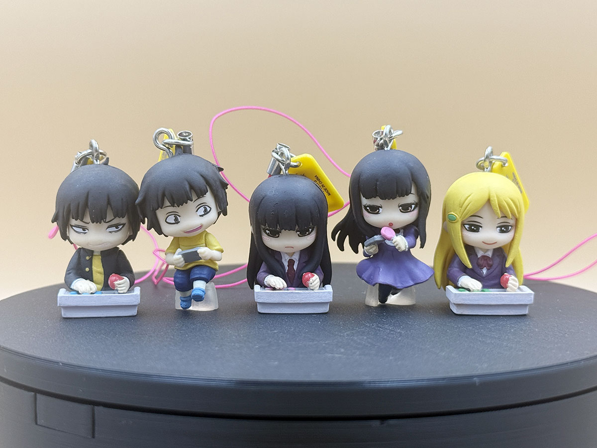 사이즈가 작지만 그걸 감안하면 그럭저럭 괜찮은 퀄리티를 보여주는 가샤퐁 제품이라고 하겠다. 반다이 제품이 아니니 ...가챠 피규어라고 해야 하려나. 어쨌거나, 발매된지 10년이 되어가는 제품이라 뒤늦게 구하느라 살짝 품이 들었지만, 무사히 5종을 갖출 수는 있었다. 제품 있는 그대로 사진을 남기느라 머리의 스트랩을 그대로 남겨뒀는데.. 역시 빼는게 더 낫겠지..?